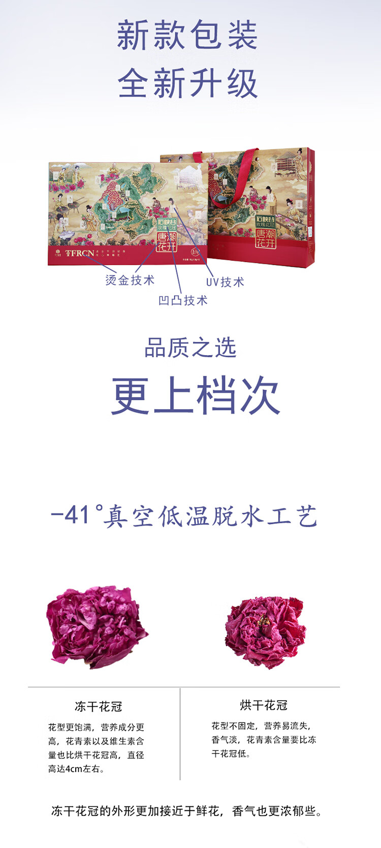唐潮花開(kāi)平陰重瓣紅玫瑰凍干花冠 原產(chǎn)地凍干玫瑰花冠禮盒